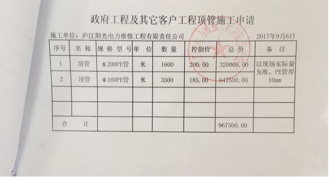 1、项目内容:本工程为庐江阳光电力维修工程有限责任公司政府工程及其他客户工程顶管工程施工招标。